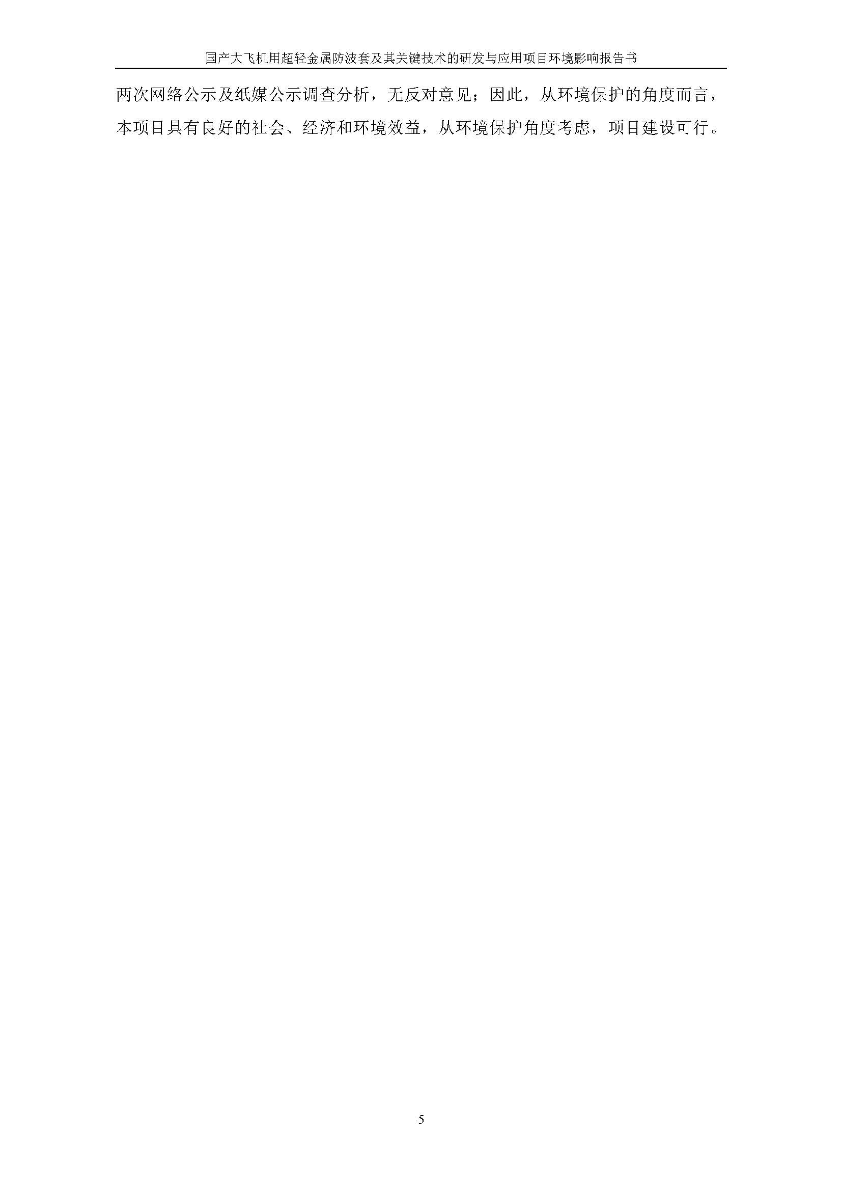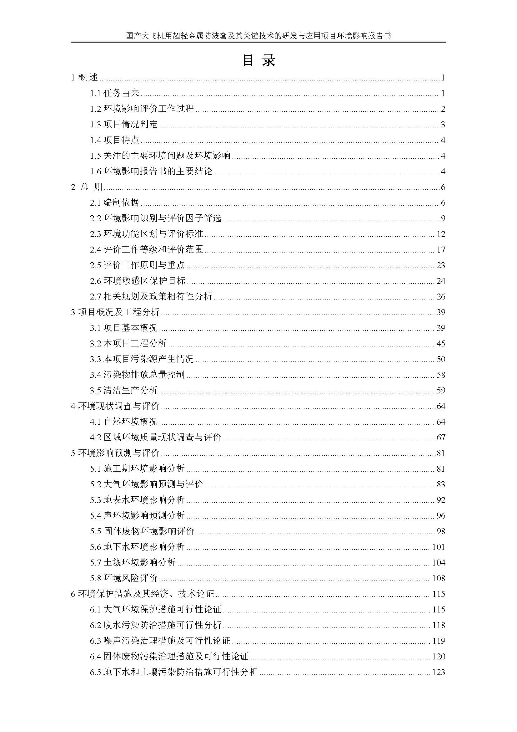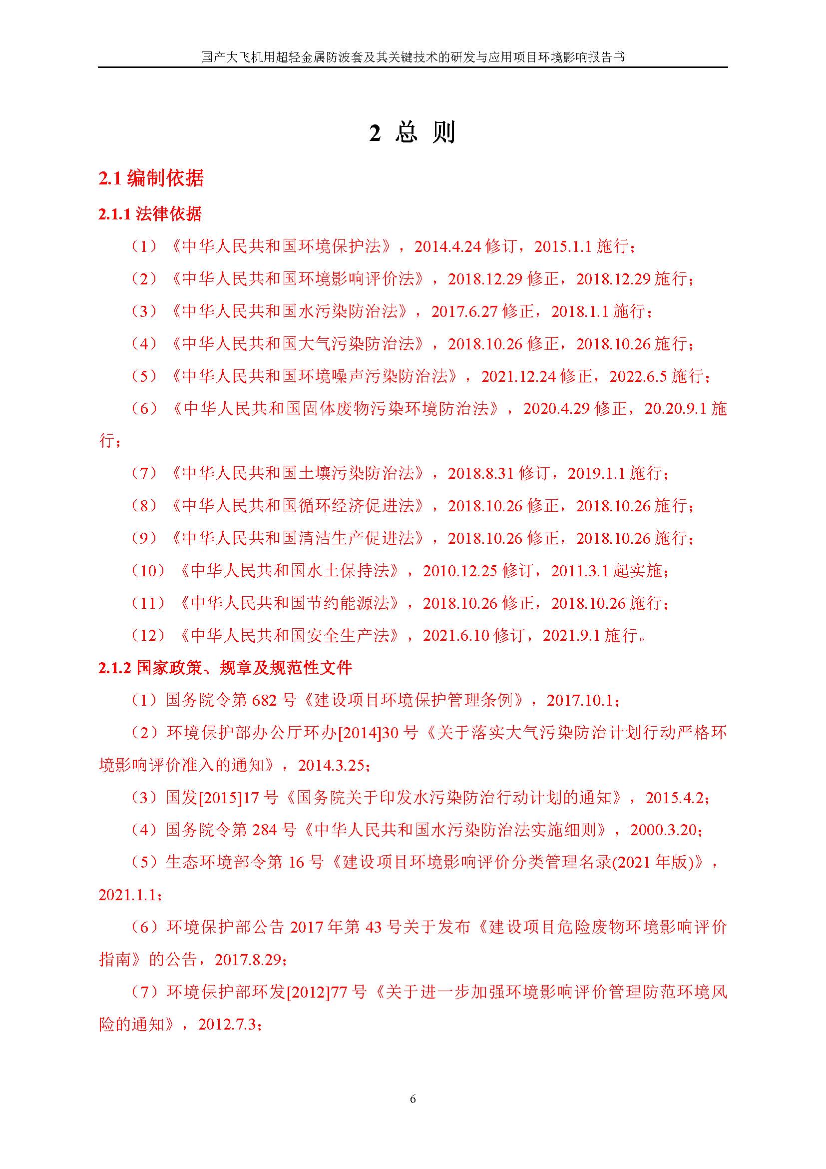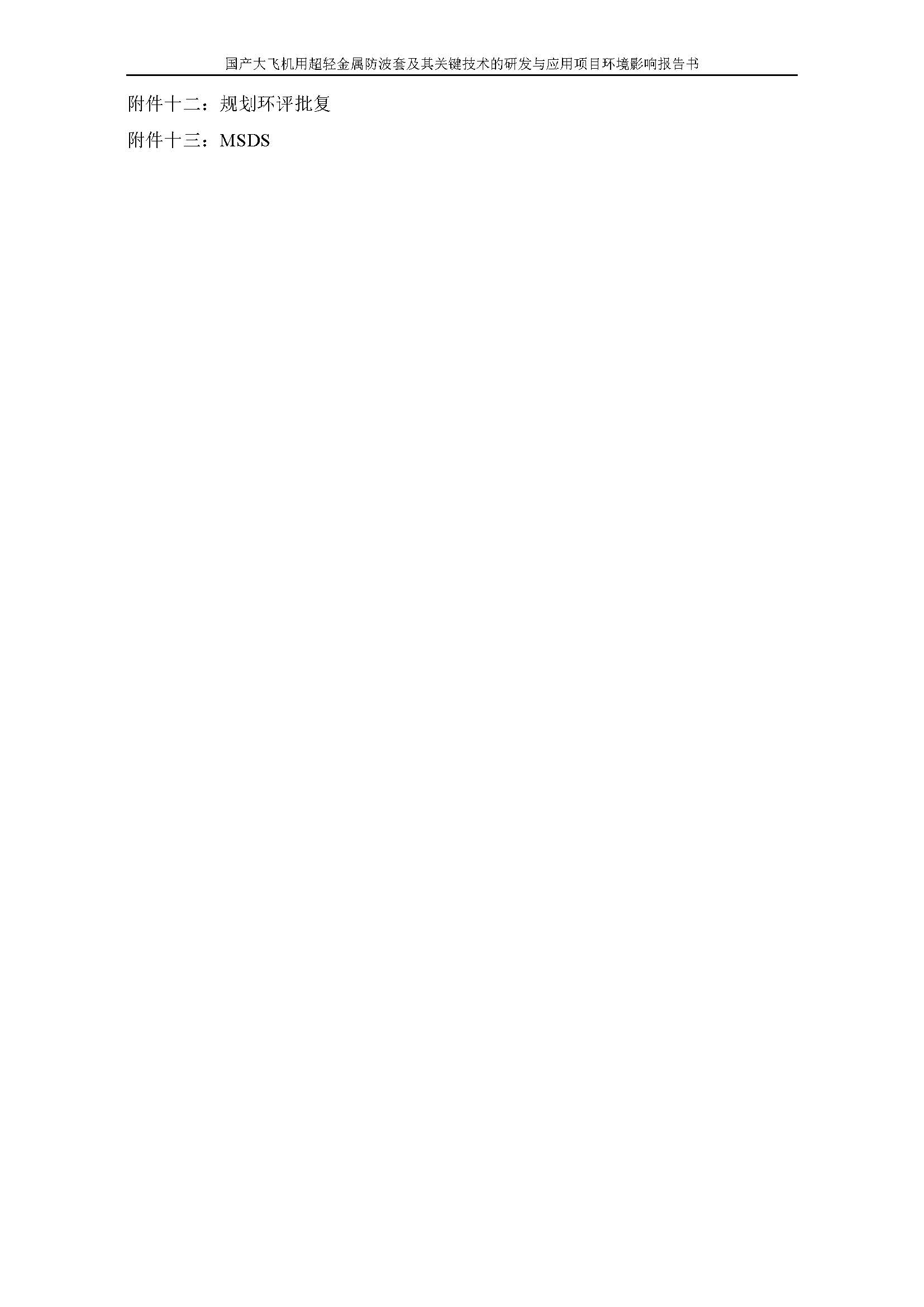 附件二:《國產(chǎn)大飛機用超輕金屬防波套及其關鍵技術的研發(fā)與應用項目環(huán)境影響評價報告書(征求意見稿)》