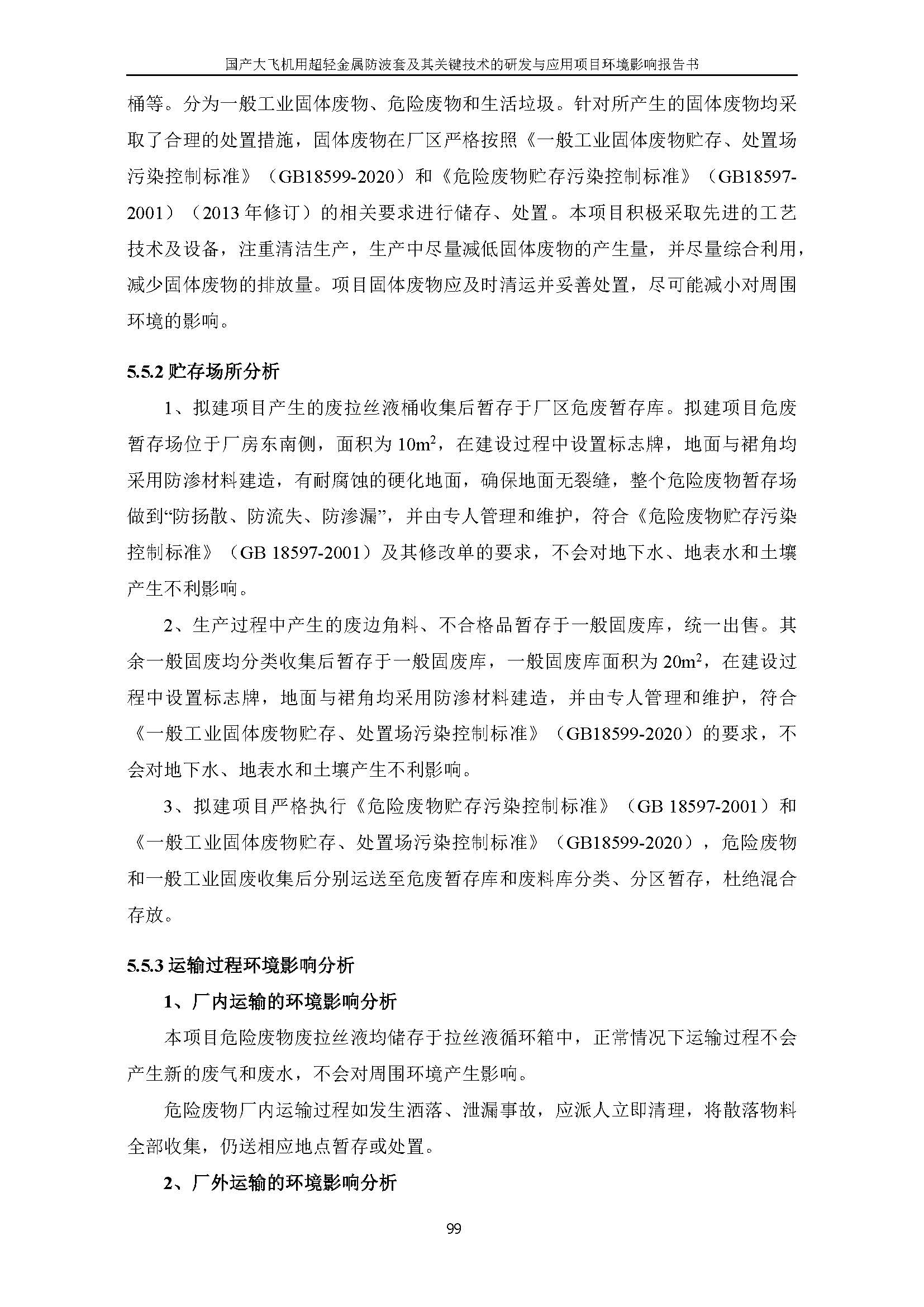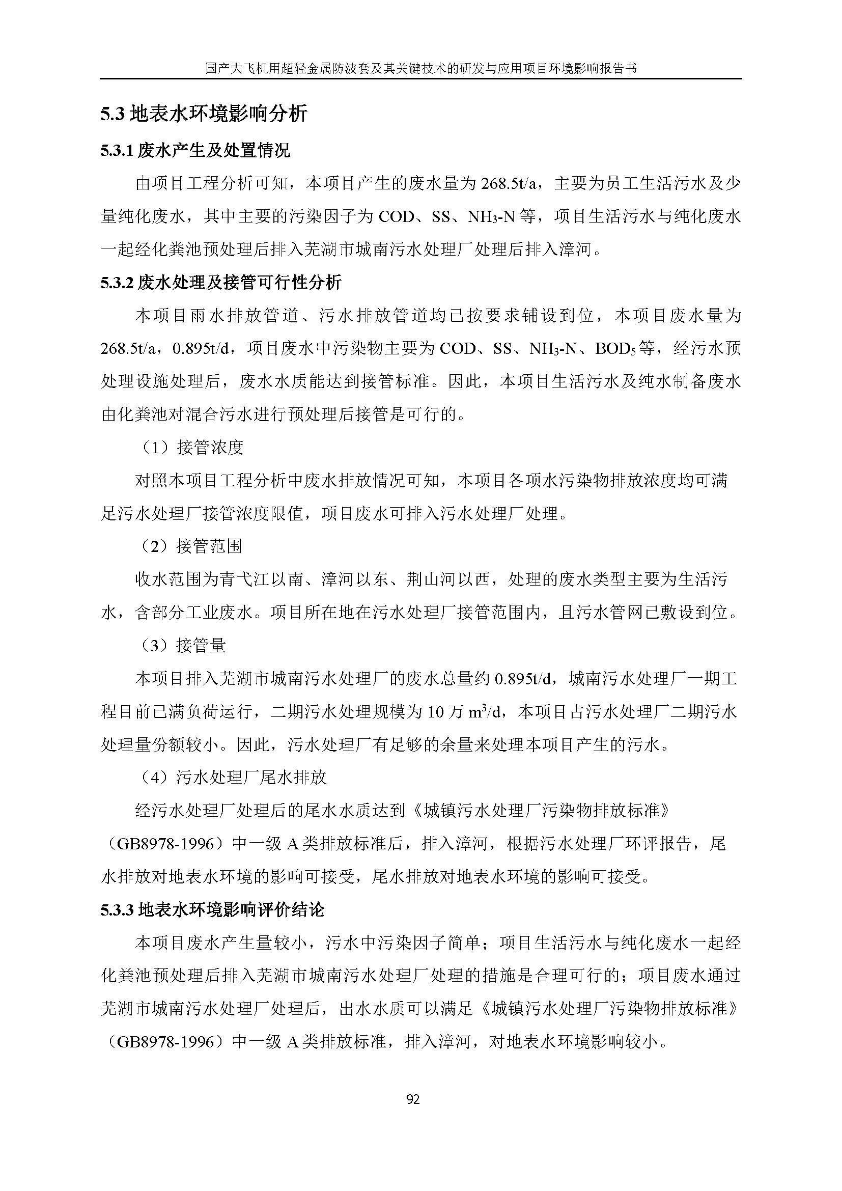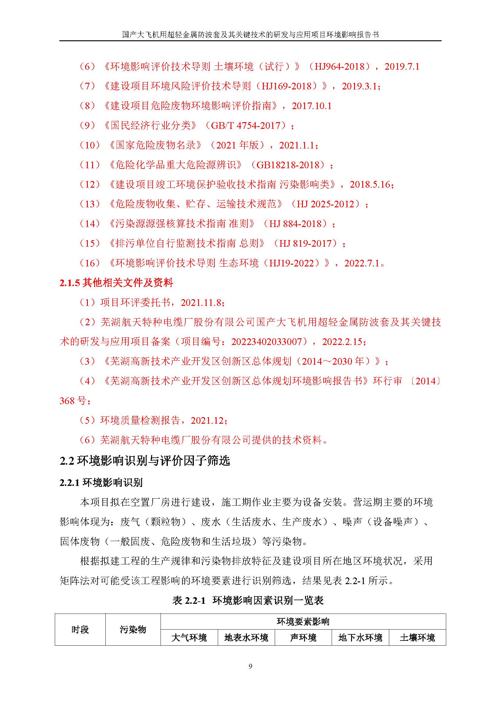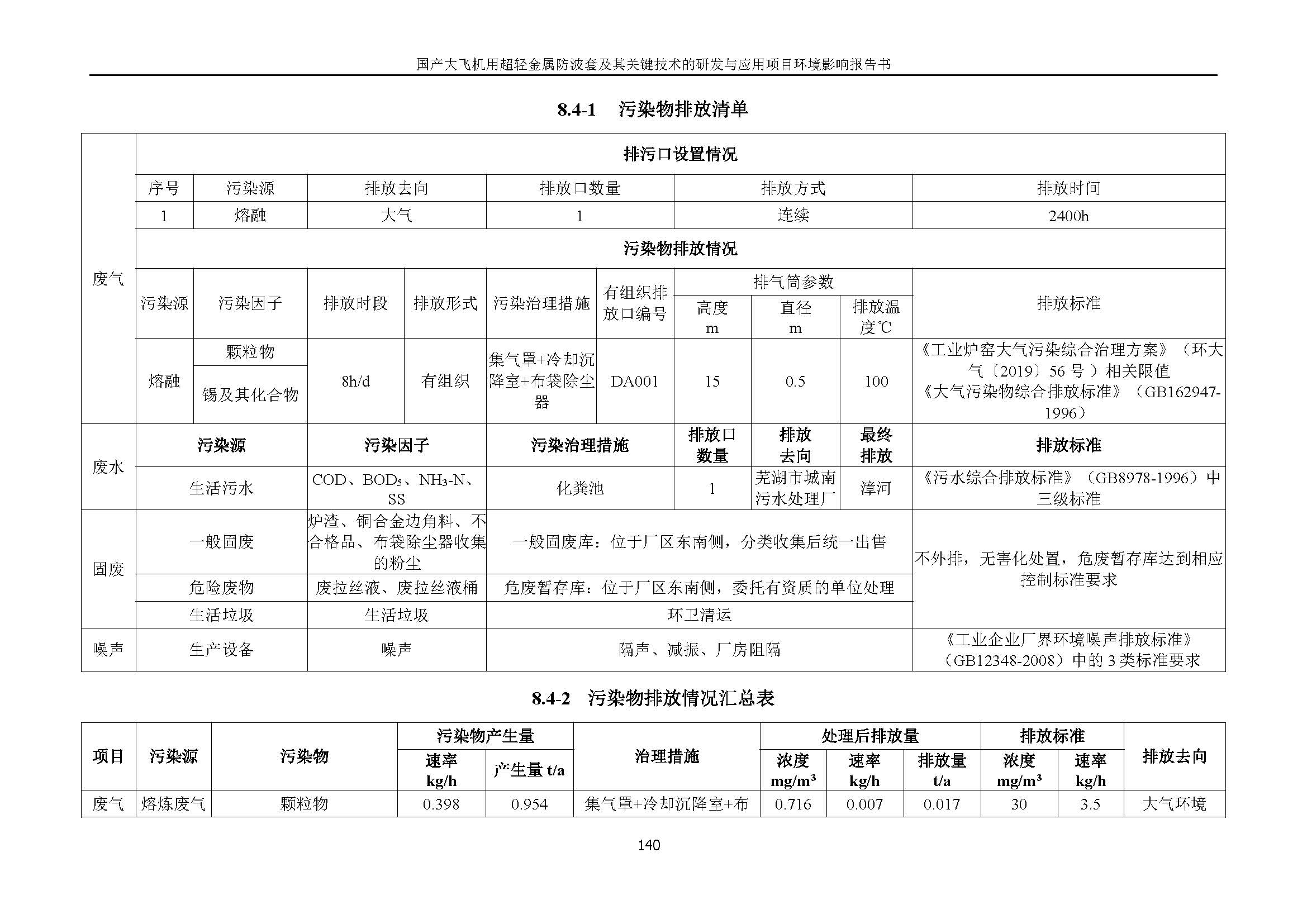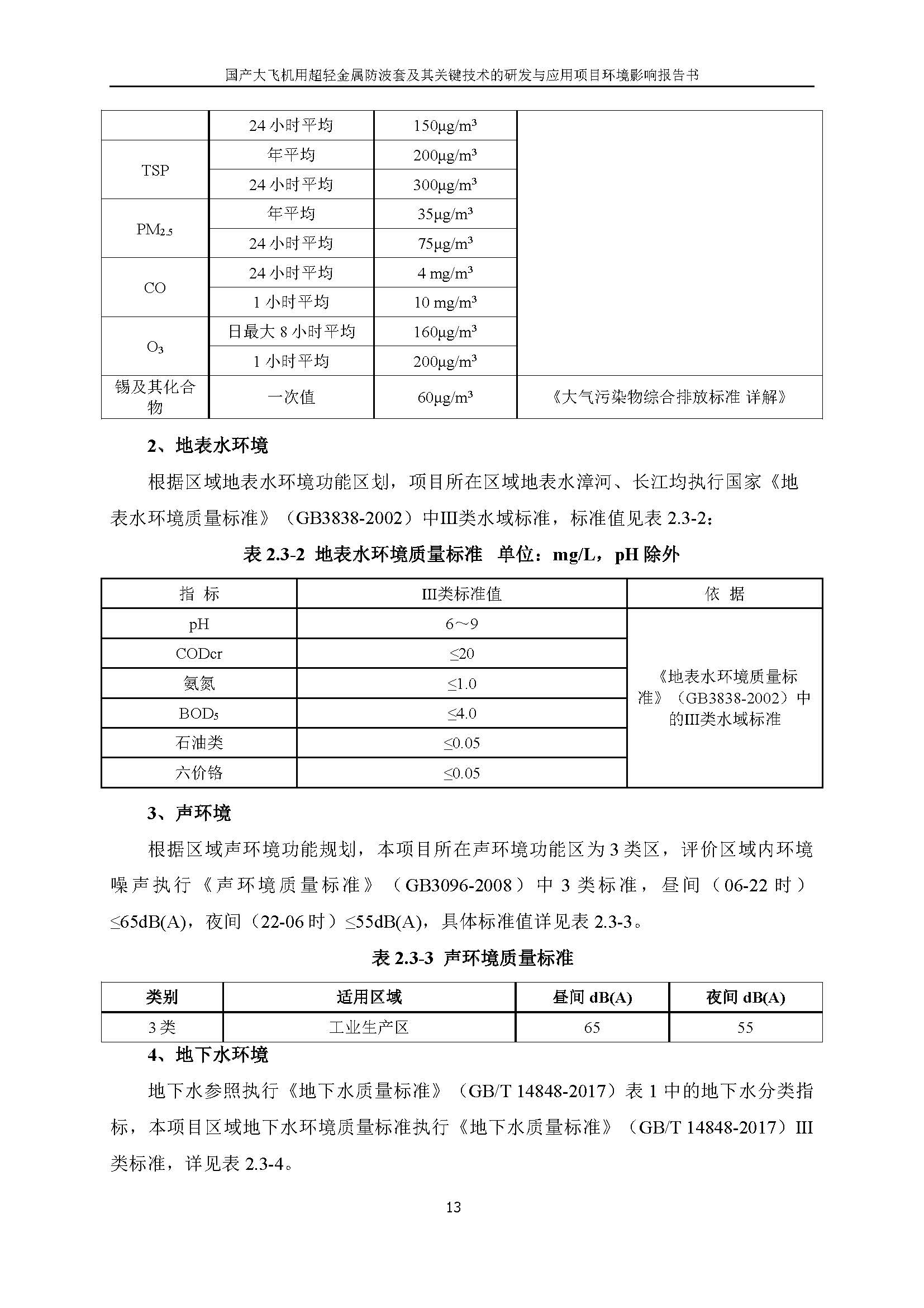 附件二:《國產(chǎn)大飛機用超輕金屬防波套及其關鍵技術的研發(fā)與應用項目環(huán)境影響評價報告書(征求意見稿)》