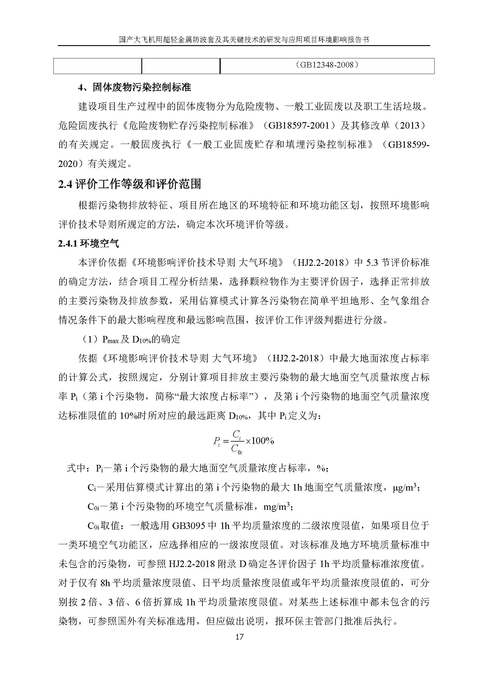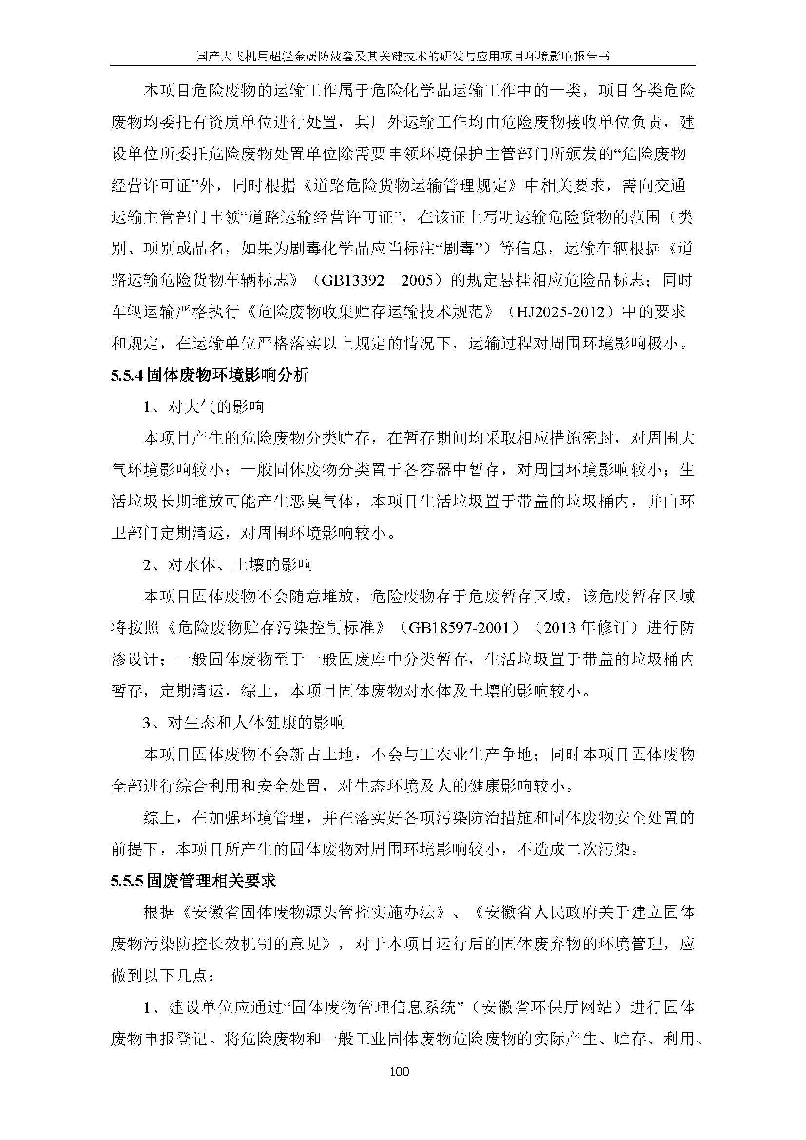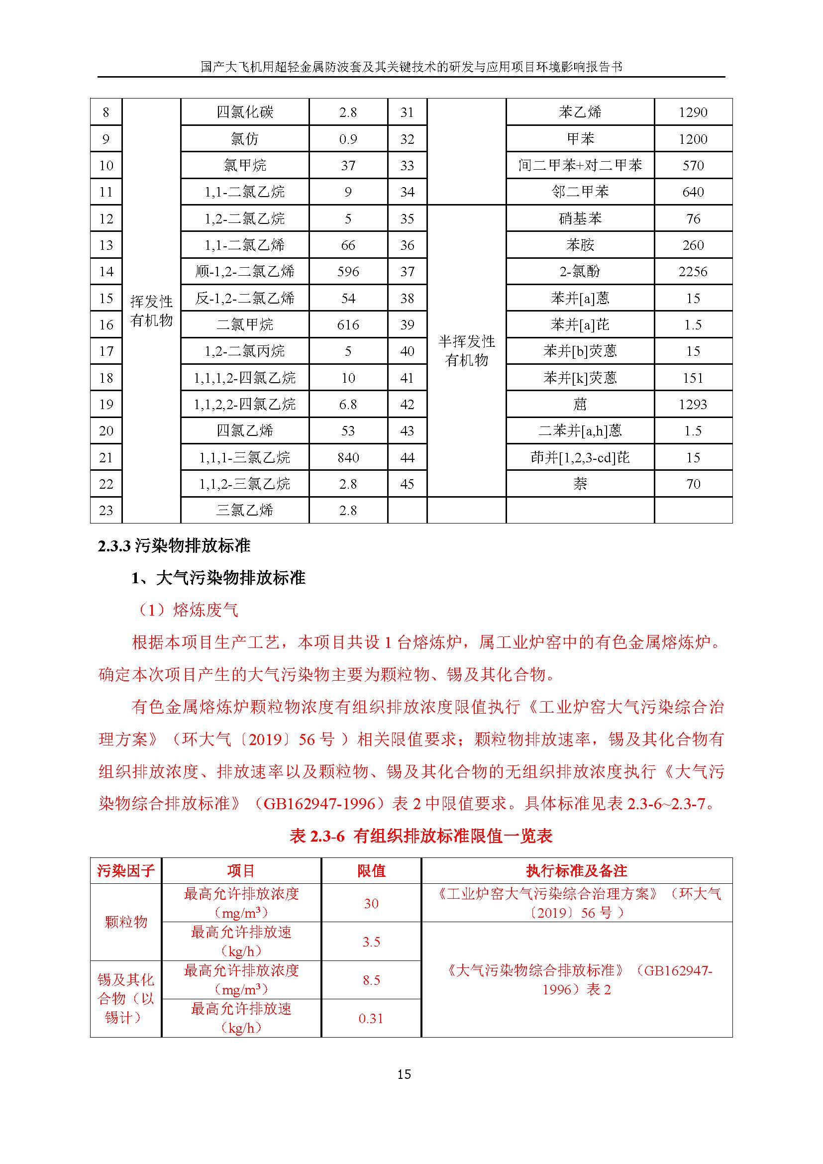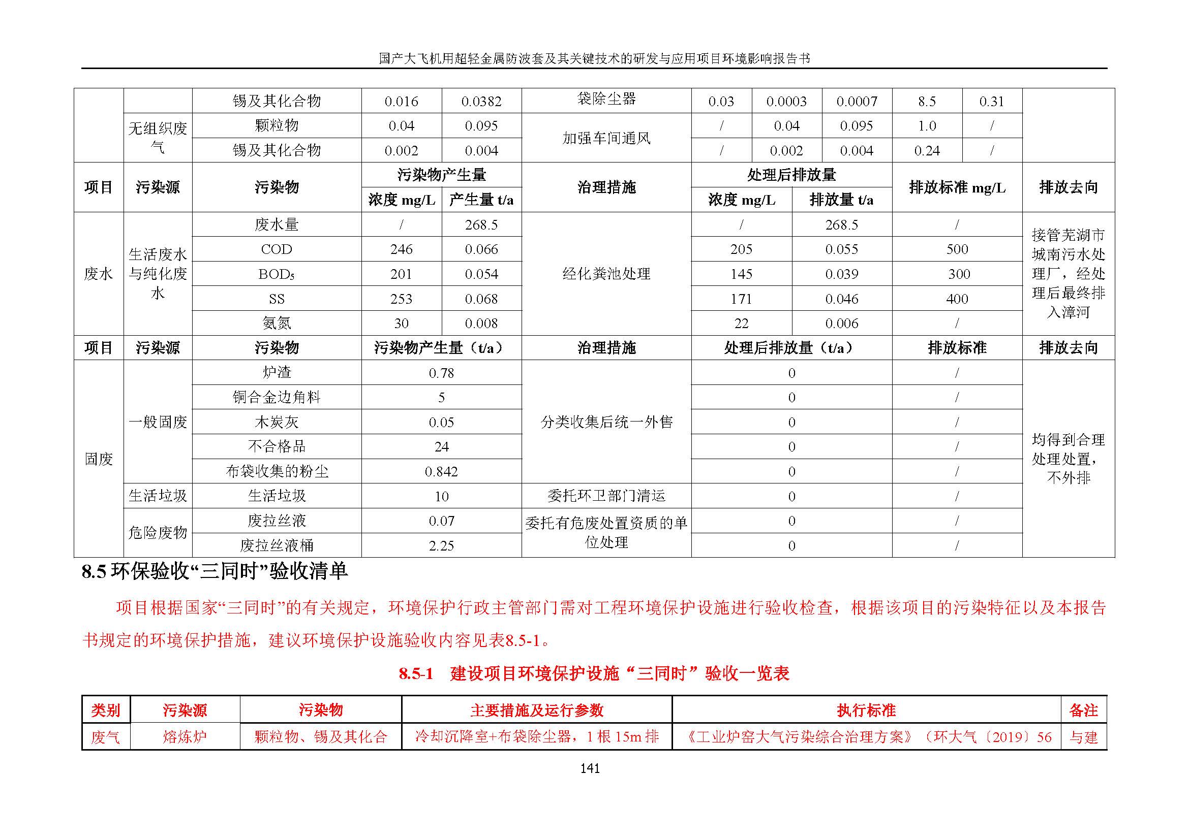 附件二:《國產(chǎn)大飛機用超輕金屬防波套及其關鍵技術的研發(fā)與應用項目環(huán)境影響評價報告書(征求意見稿)》