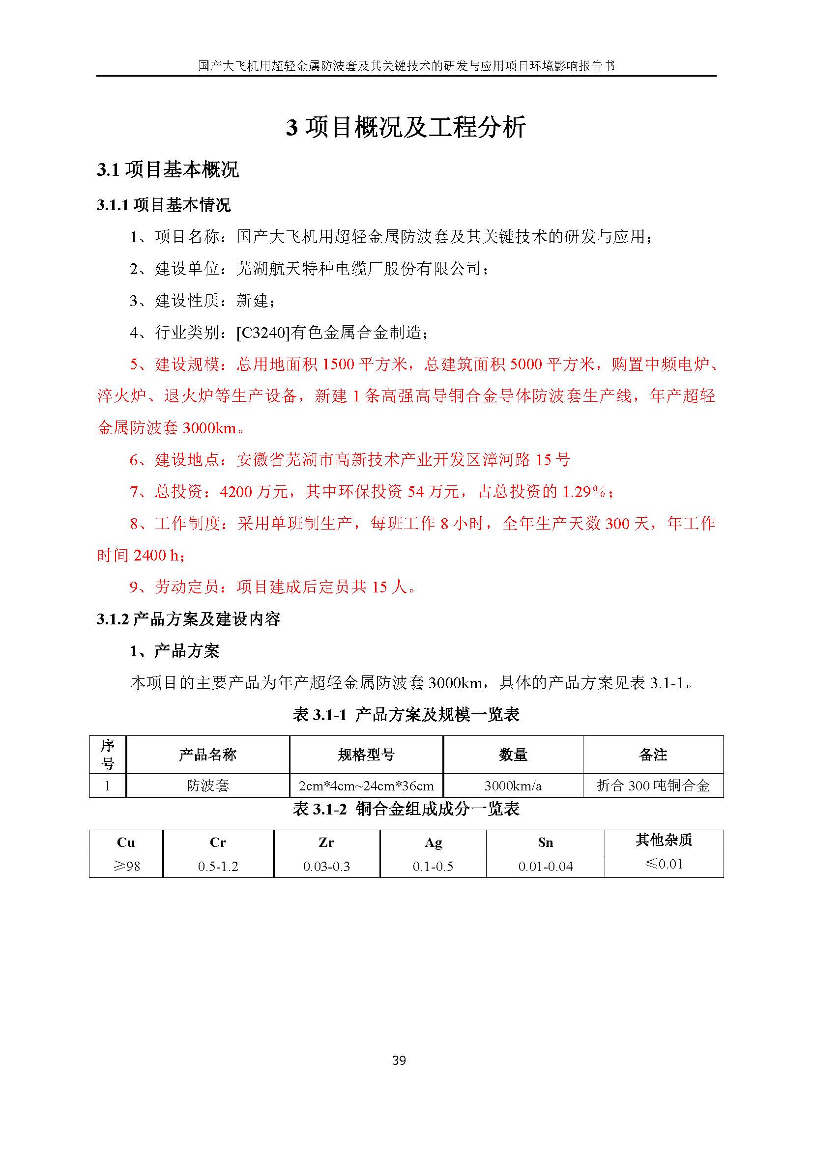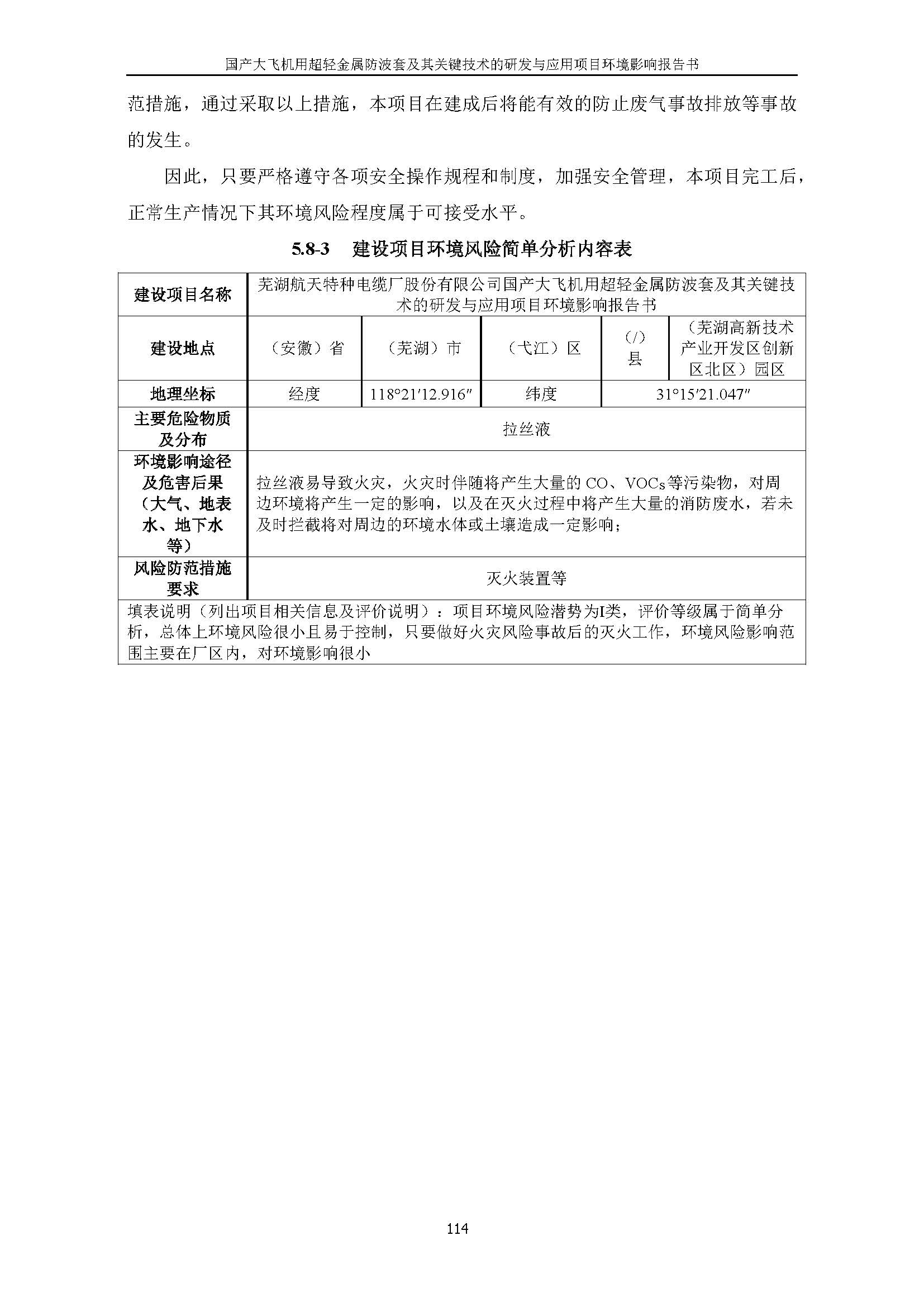 蕪湖航天特種電纜廠股份有限公司國產(chǎn)大飛機用超輕金屬防波套及其關鍵技術的研發(fā)與應用項目環(huán)境影響評價第二次公示